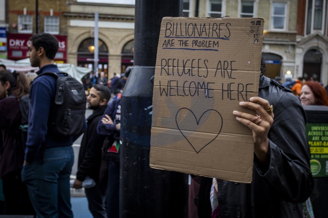 A protest organised by the right-wing group known as the ‘Pink Ladies' took place outside Tower Hamlets Town Hall in East London. The demonstration was met by counter-protesters opposing their message, leading to tense exchanges between both sides. Police maintained a visible presence to keep the groups apart as crowds gathered outside the Town Hall., Credit:Zak Irfan / Avalon