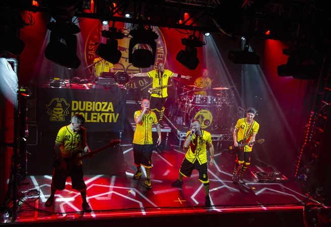 Dubioza Kolektiv, one of the most popular live band from Eastern Europe, perform at Electric Ballroom in London on 8th October 2025.Dubioza Kolektiv is a Bosnian avant-garde dub rock group known for their crossover style that incorporates elements of hip hop, ska, reggae/dub, rock, punk, electronic music, and Balkan music, and for their socially and politically conscious songwriting with lyrics in multiple languages.Vedran Mujagić – bass guitarAlmir Hasanbegović – vocalsAdis Zvekić – vocalsSenad Šuta – drumsMario Ševarac – saxophoneJernej Šavel – guitarBrano Jakubović – sampling, keyboards, acoustic guitar, Credit:Zoran Veselinovic / Avalon
