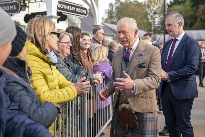 King Charles III meet members of the public during a visit to mark the 150th anniversary of The Albert Hall in Ballater, Aberdeenshire. Picture date: Thursday October 9, 2025., Credit:Avalon.red / Avalon