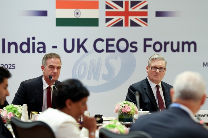 09/10/2025. Mumbai, India. Prime Minister Keir Starmer and Secretary of State for Business and Trade Peter Kyle join Indian Prime Minister Narendra Modi at JioWorld Fintech conference at the Bandra Kurla Complex., Credit:Simon Dawson / Avalon