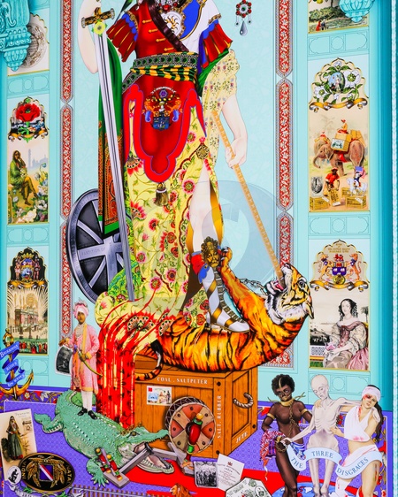London, UK. 09th Oct 2025. Detail of 'Imperialism, by the Yardstick and Sword', 2025, by the Singh Twins. At the Shirley Sherwood Gallery of Botanical Art, Kew Gardens, new exhibitions recover the lost stories of remarkable artworks and illuminate traditional Indian art. New lightbox works from acclaimed artists The Singh Twins are on display to the public for the first time., Credit:Imageplotter / Avalon