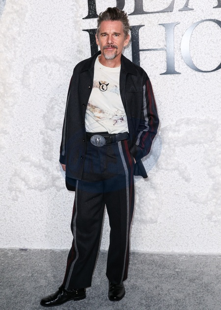 HOLLYWOOD, LOS ANGELES, CALIFORNIA, USA - OCTOBER 08: American actor, director, writer, and novelist Ethan Hawke arrives at the World Premiere Of Universal Pictures And Blumhouse Productions' 'Black Phone 2' held at the TCL Chinese Theatre IMAX on October 8, 2025 in Hollywood, Los Angeles, California, United States., Credit:Xavier Collin / Avalon