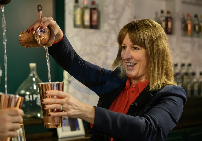 UK Chancellor of the Exchequer Rachel Reeves mixes gin with company co-founder and Master Distiller Jared Brown as she visits the Sipsmith Distillery to highlight how the India Free Trade Agreement is supporting British Business, Chiswick, London, 09 October 2025., Credit:Paul Grover / Avalon