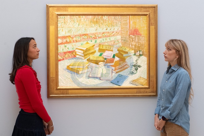 Staff members view 'Romans parisiens (Les Livres jaunes) by Vincent Van Gogh (in excess of $40m USD) which is going on public view ahead of auctions on 16th - 17th October as part of Sotheby's Frieze Week Auctions - Sotheby's, London, England, UK on Friday 10 October, 2025., Credit:Justin Ng / Avalon