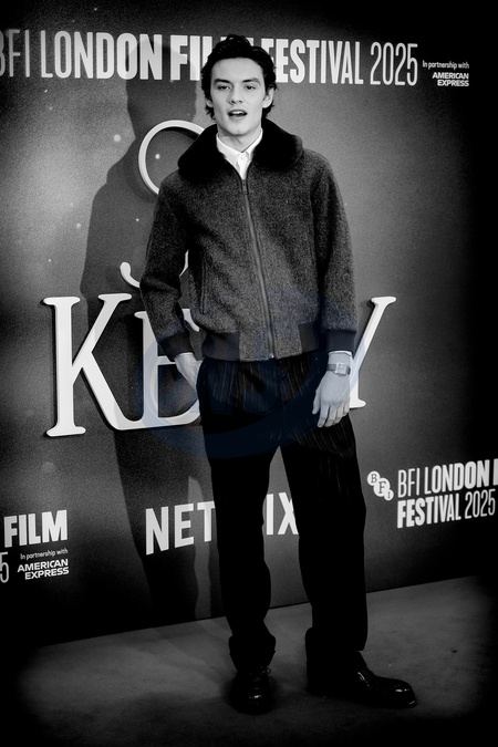 Louis Partridge attends the BFI London Film Festival; the UK premiere of JAY KELLY on Friday 10 October 2025 at Royal Festival Hall, London. Editors Note: Image converted to monochrome., Credit:Julie Edwards / Avalon