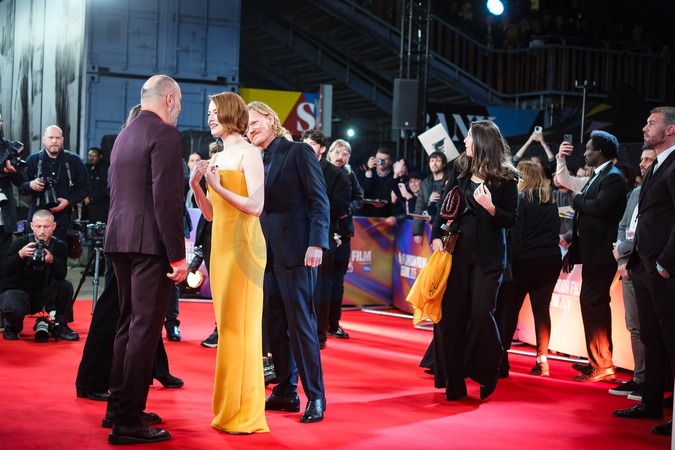 Yorgos Lanthimos, Emma Stone and Jesse Plemons attends the BFI London Film Festival; the UK premiere of BUGONIA on Friday 10 October 2025 at Royal Festival Hall, London. ., Credit:Julie Edwards / Avalon