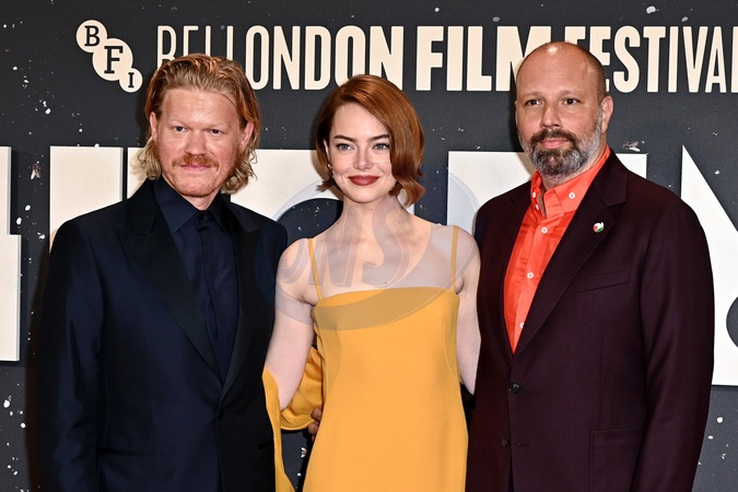 Jesse Plemons, Emma Stone, Yorgos Lanthimos attends ‘Bugonia' - UK Premiere during the BFI London Film Festival, at the Southbank Centre, Royal Festival Hall in London, England. UK. Friday 10th October 2025, Credit:James Warren / Avalon