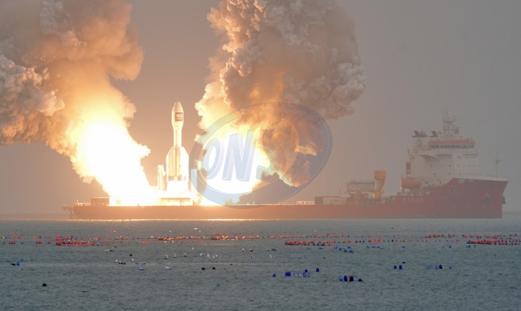 Orienspace, a private space company, launches its Gravity-1 rocket — currently the world's most powerful solid-propellant launch vehicle with a low-Earth orbit carrying capacity of 6.5 tonnes — from a ship off the coast of Haiyang in east China's Shandong province Saturday, Oct. 11, 2025., Credit:TANG KE / Avalon