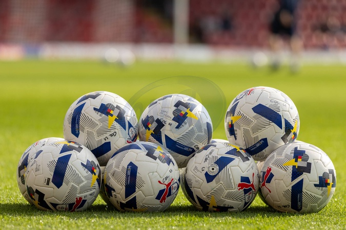 Grimsby Town FC v Colchester United EFL Sky Bet League 2 11/10/2025. EFL 2025/26 season Puma Orbita 1 match balls during the EFL Sky Bet League 2 match between Grimsby Town FC and Colchester United at Blundell Park, Grimsby, United Kingdom on 11 October 2025. Editorial use only DataCo restrictions apply See www.football-dataco.com , Copyright: xJezxTighex PSI-23019-0165, Credit:IMAGO/Jez Tighe / Avalon