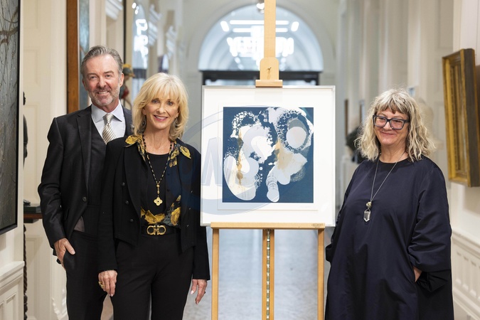 EDITORIAL USE ONLY(From left) Matthew Orr, Sybil Robson with Scottish artist Anya Gallaccio, as she is announced as the recipient of the Government Art Collection Robson Orr TenTen Award 2025 by Museums and Cultural Property Minister Baroness Twycross, philanthropists Sybil Robson Orr and Matthew Orr and Director of the Government Art Collection Eliza Gluckman at the Government Art Collection headquarters in Old Admiralty Building, London. Picture date: Monday October 6, 2025. The announcement included the unveiling of her new work 'eight hours of whale song', which is inspired by whale song and explores the importance of diplomacy in addressing the ecological crisis. It will be displayed in British government buildings and embassies around the world as well as sold to support Government Art Collection's acquisition fund., Credit:David Parry/PA Media Assignments / Avalon