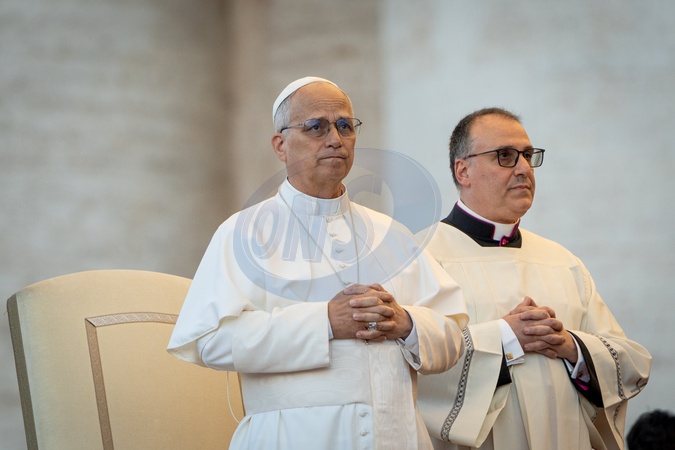 Pope Leo XIV presides over a Rosary vigil for peace in St. Peter's Square in Vatican City, Vatican, on 11 October 2025.