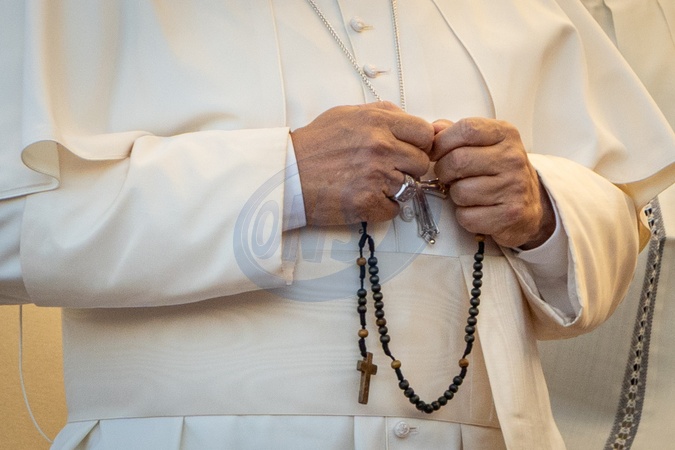 Pope Leo XIV presides over a Rosary vigil for peace in St. Peter's Square in Vatican City, Vatican, on 11 October 2025.