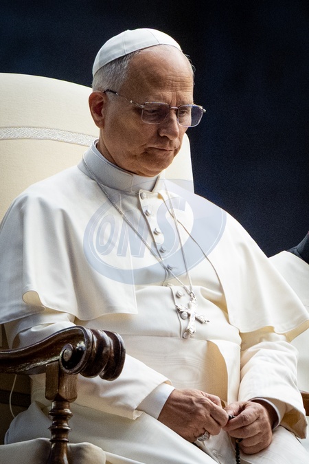 Pope Leo XIV presides over a Rosary vigil for peace in St. Peter's Square in Vatican City, Vatican, on 11 October 2025.