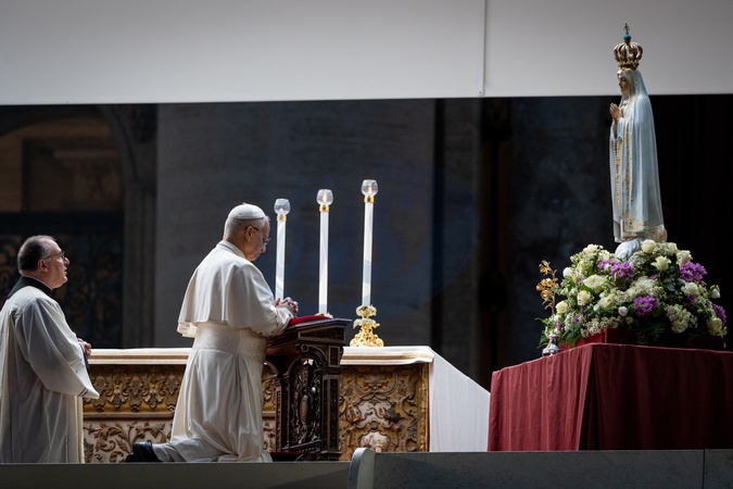 Pope Leo XIV presides over a Rosary vigil for peace in St. Peter's Square in Vatican City, Vatican, on 11 October 2025.