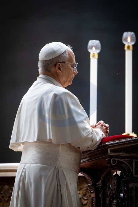 Pope Leo XIV presides over a Rosary vigil for peace on the 63rd anniversary of the start of the Second Vatican Council in St. Peter's Square in Vatican City, Vatican, on 11 October 2025., Credit:Stefano Costantino TTL / Avalon