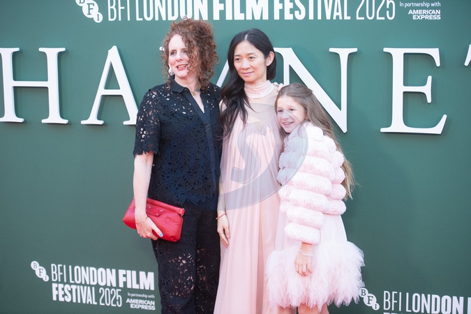 (L-R) - Maggie O'Farrell, Chloe Zhao and Olivia Lynes attends the Mayor of London Headline Gala of 'Hamnet' at The 69th BFI London Film Festival at Royal Festival Hall, Southbank, London, England, UK on Saturday 11 October, 2025., Credit:Justin Ng / Avalon
