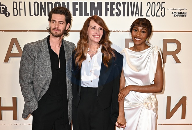 Andrew Garfield, Julia Roberts and Ayo Edebiri attends ‘After the Hunt' Premiere during the BFI London Film Festival, at the Southbank Centre, Royal Festival Hall in London, England. UK. Saturday 11th October 2025, Credit:James Warren / Avalon