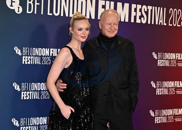 Elle Fanning and Stellan Skarsgĺrd attends "Sentimental Value" Premiere during the BFI London Film Festival, at the Southbank Centre, Royal Festival Hall in London, England. UK. Sunday 12th October 2025, Credit:James Warren / Avalon