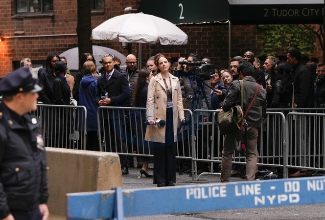 Film set for the TV series FBI at the corner of Tudor City Place and East 41st Street in New York City, Monday, October 13, 2025., Credit:Jennifer Graylock-Graylock.com / Avalon