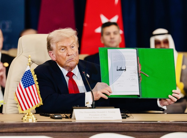 13/10/2025 Sharm el Sheikh, Middle East Peace Plan signing ceremony, pictured is President Donald Trump signing the Peace Plan, Credit:Ufficio Stampa / Avalon
