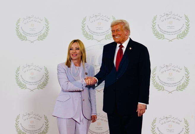 13/10/2025 Sharm el Sheikh, Signing ceremony of the Middle East Peace Plan, pictured is Prime Minister Giorgia Meloni with US President Donald Trump, Credit:Ufficio Stampa / Avalon