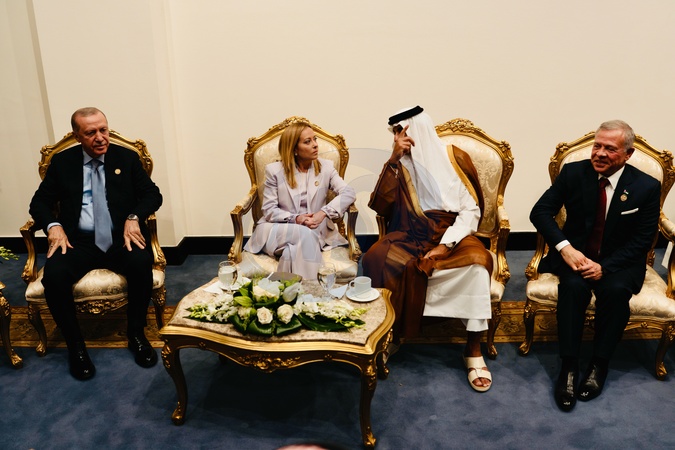 13/10/2025 Sharm el Sheikh, signing ceremony of the Peace Plan for the Middle East, in the photo the Prime Minister Giorgia Meloni with the Turkish President Erdogan, the King of Jordan and the Emir of Qatar, Tamim bin Hamad Al Thani, Credit:Ufficio Stampa / Avalon