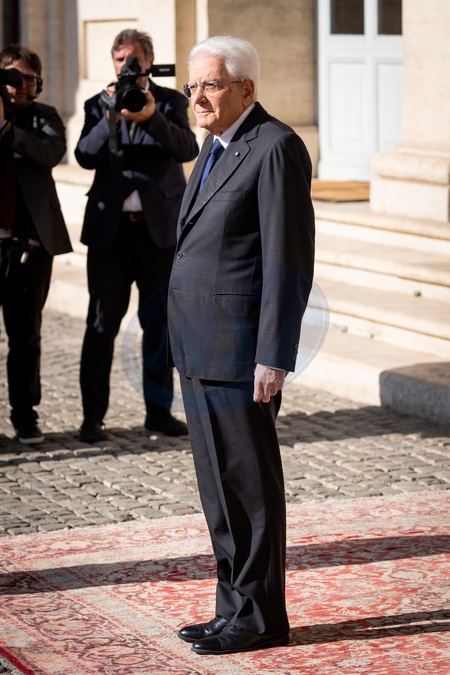 Pope Leo XIV is welcomed by Italian President Sergio Mattarella as he arrives at the Quirinale Presidential Palace in Rome, Italy, on 14 October, 2025., Credit:Stefano Costantino TTL / Avalon