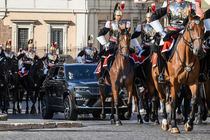 Pope Leo XIV arrives at the Quirinale Palace for a meeting with the President of the Republic. Rome, Italy October 14, 2025
