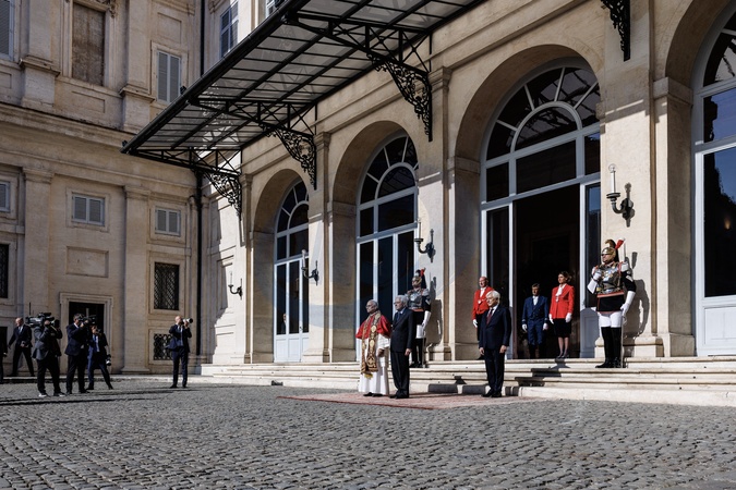Pope Leo XIV arrives at the Quirinale Palace for a meeting with the President of the Republic. Rome, Italy October 14, 2025