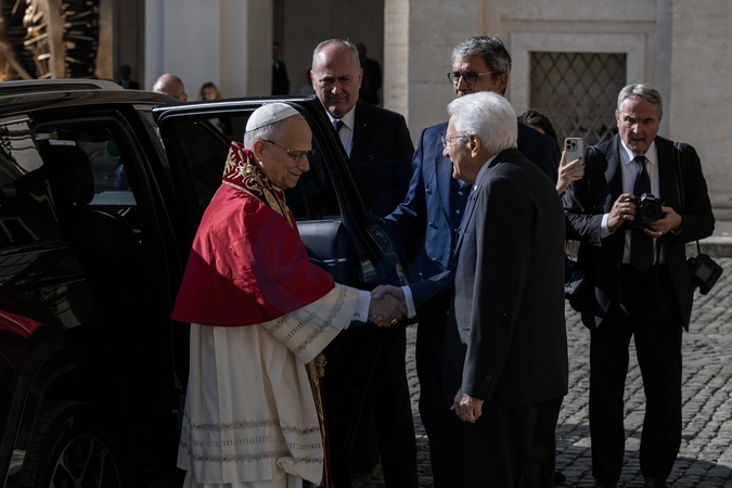 Pope Leo XIV arrives at the Quirinale Palace for a meeting with the President of the Republic. Rome, Italy October 14, 2025