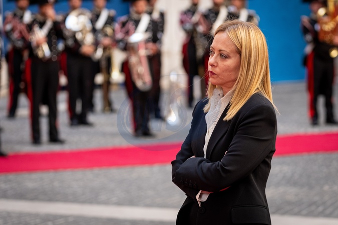 Italian Prime Minister Giorgia Meloni receives the President of Paraguay, Santiago Peña Palacios at Palazzo Chigi in Rome, Italy on 14 October 2025.