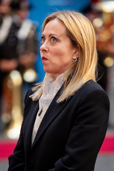 Italian Prime Minister Giorgia Meloni receives the President of Paraguay, Santiago Peña Palacios at Palazzo Chigi in Rome, Italy on 14 October 2025.