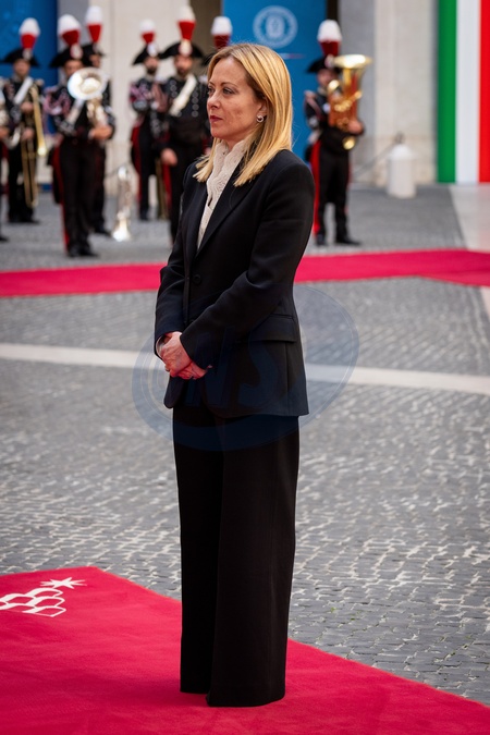 Italian Prime Minister Giorgia Meloni receives the President of Paraguay, Santiago Peña Palacios at Palazzo Chigi in Rome, Italy on 14 October 2025.