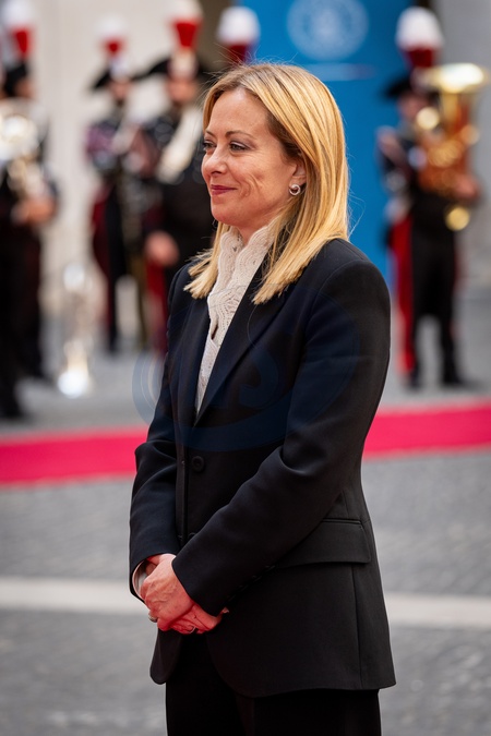 Italian Prime Minister Giorgia Meloni receives the President of Paraguay, Santiago Peña Palacios at Palazzo Chigi in Rome, Italy on 14 October 2025.