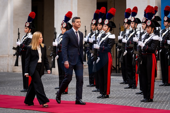 Italian Prime Minister Giorgia Meloni receives the President of Paraguay, Santiago Peña Palacios at Palazzo Chigi in Rome, Italy on 14 October 2025.