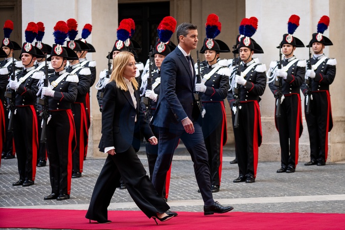 Italian Prime Minister Giorgia Meloni receives the President of Paraguay, Santiago Peña Palacios at Palazzo Chigi in Rome, Italy on 14 October 2025.