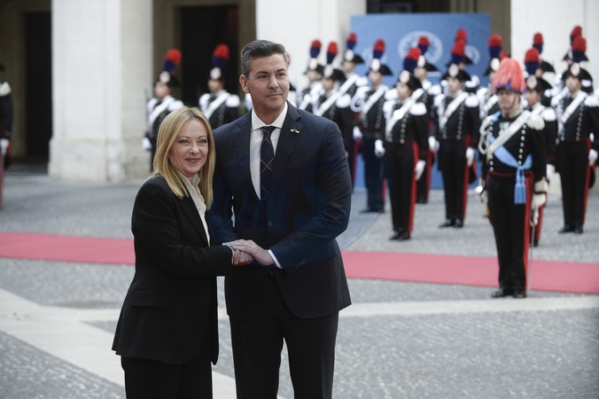 Italy, Rome, 14 October, 2025 - Chigi Palace, Prime Minister Giorgia Meloni receives the President of Paraguay