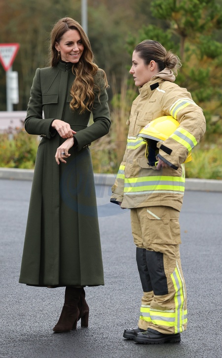 14/10/2025. Cookstown, UK. The Prince and Princess of Wales during a visit to the Northern Ireland Fire and Rescue Service Learning and Development College in Cookstown, Northern Ireland. The Prince and Princess met with Chief Fire & Rescue Officer, Aidan Jennings and learned how the college equips trainees with the skills, resilience and expertise needed to help keep everyone in Northern Ireland safe. Their Royal Highnesses then engaged with two training scenarios: a warehouse space where there was a variety of simulated incidents and drills ongoing, and the flood-water rescue training space to see a simulation of a casualty being rescued from a fast-flowing river. During these scenarios, The Prince and Princess met some of the young, trainee firefighters, as well as those who have already graduated., Credit:Pete Maclaine / Avalon