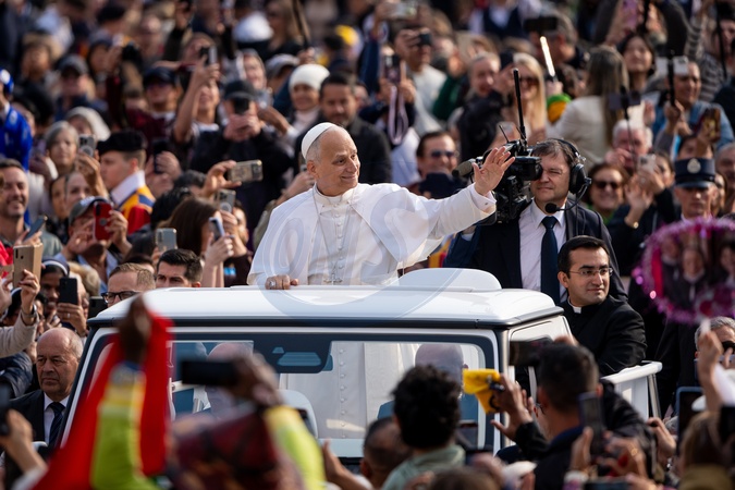 Pope Leo XIV leads his traditional Wednesday General Audience in St. Peter's Square in Vatican City, Vatican, on 15 October 2025.
