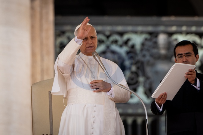 Pope Leo XIV leads his traditional Wednesday General Audience in St. Peter's Square in Vatican City, Vatican, on 15 October 2025.
