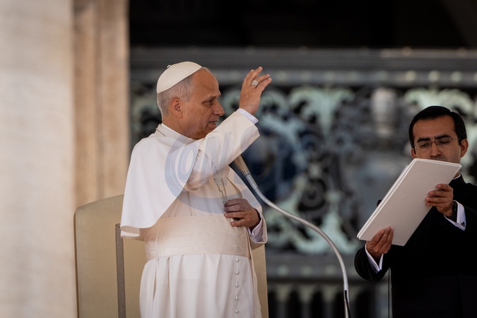 Pope Leo XIV leads his traditional Wednesday General Audience in St. Peter's Square in Vatican City, Vatican, on 15 October 2025.