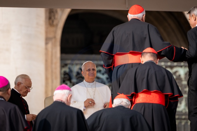 Pope Leo XIV leads his traditional Wednesday General Audience in St. Peter's Square in Vatican City, Vatican, on 15 October 2025.