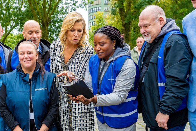 Zaandam, The Netherlands, 2025-10-15 13:56:35ZAANDAM, October 15, 2025, Municipality of Zaanstad, Queen Máxima and the State Secretary for Participation and Integration, Jurgen Nobel, during a working visit to the Municipality of Zaanstad as part of the "Zaandam-Oost Pact 2024-2044." PHOTO: NLBeeld/Patrick van Emst, Credit:Avalon