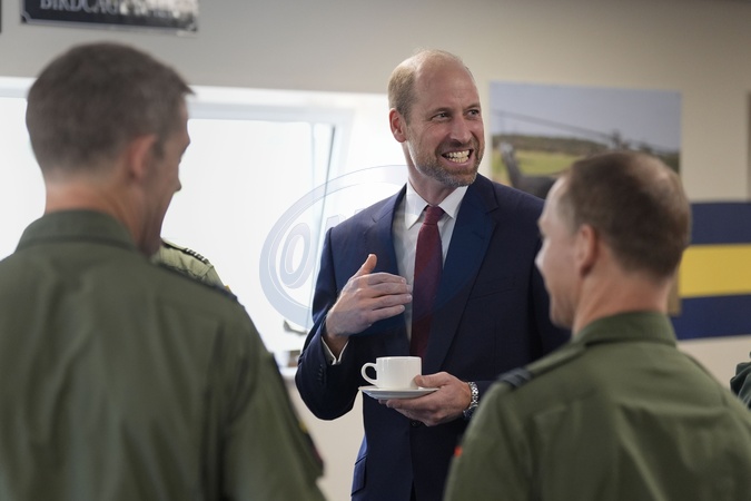 The Prince of Wales meets trainee aircrew and staff from No. 28 (AC) Sqn and No. 22 Sqn during a visit to RAF Benson in Wallingford, Oxfordshire. Picture date: Wednesday October 15, 2025., Credit:Andrew Matthews / Avalon
