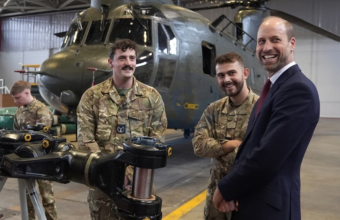 The Prince of Wales (right) meets with maintenance crew from No. 28 (AC) Sqn during a visit to RAF Benson in Wallingford, Oxfordshire. Picture date: Wednesday October 15, 2025., Credit:Andrew Matthews / Avalon