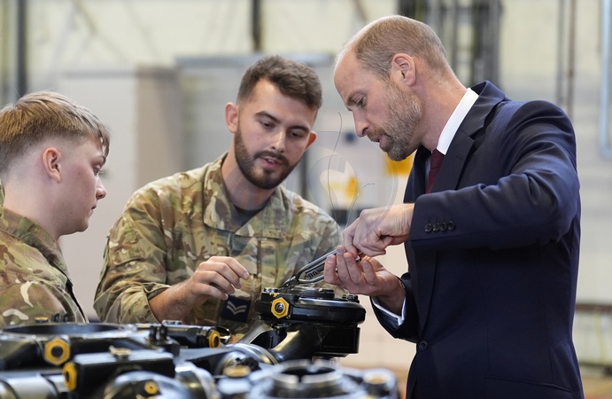 The Prince of Wales (right) helps work on a main rotor head of a Chinook helicopter as he meets helicopter technicians from No. 28 (AC) Sqn during a visit to RAF Benson in Wallingford, Oxfordshire. Picture date: Wednesday October 15, 2025., Credit:Andrew Matthews / Avalon