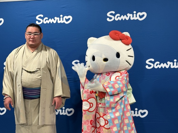 Hello Kitty and sumo wrestler Hoshoryu Tomokatsu were at Japan House London this Wednesday ahead of the Grand Sumo Tournament., Credit:Alexander Seale / Avalon