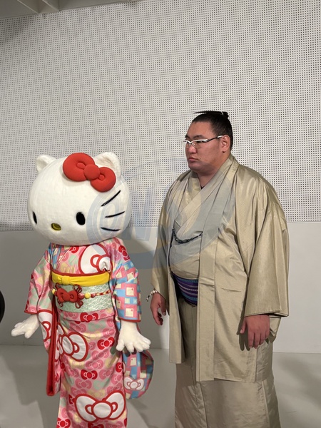 Hello Kitty, sumo wrestler Hoshoryu Tomokatsu and the CEO of Sanrio were at Japan House London this Wednesday ahead of the Grand Sumo Tournament., Credit:Alexander Seale / Avalon