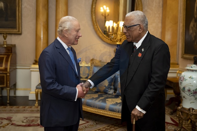 King Charles III during an audience with President of Fiji Naiqama Lalabalavu at Buckingham Palace, London. Picture date: Wednesday October 15, 2025., Credit:Avalon.red / Avalon
