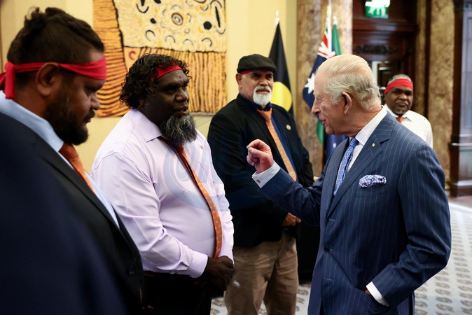Britain's King Charles meets Anangu Traditional Owners at the Australian High Commission for a celebration to commemorate the 40th Anniversary of the Handback of Uluru-Kata Tjuta, in London, Britain, October 16, 2025., Credit:Avalon.red / Avalon